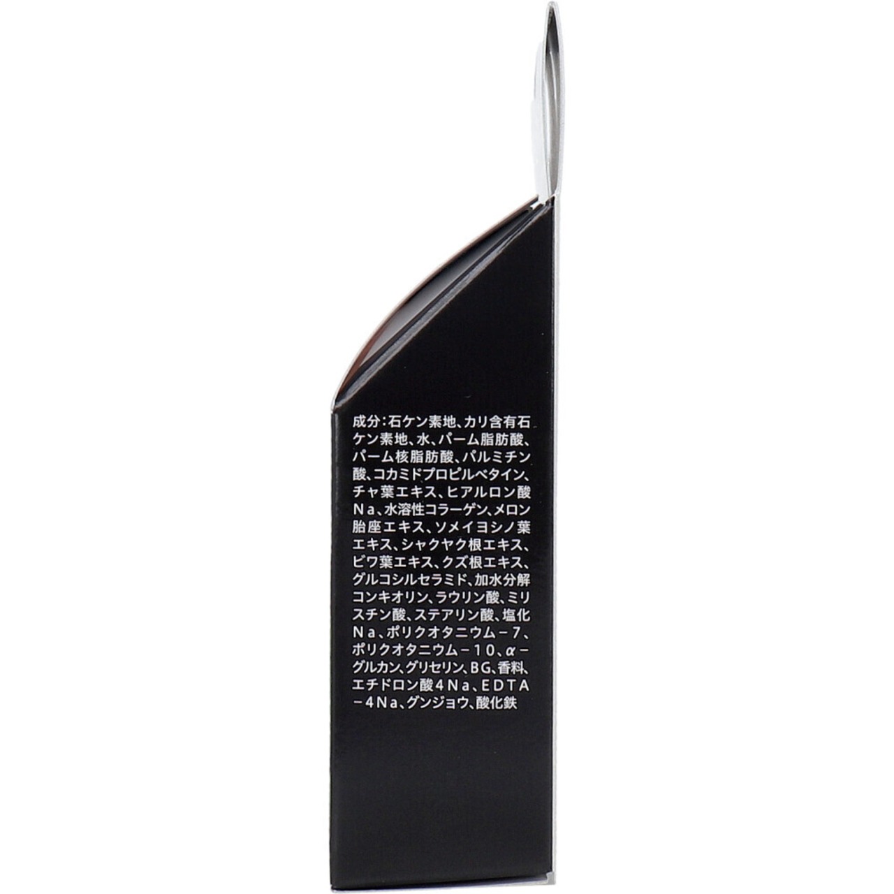 石ケン素地、カリ含有石ケン素地、水、 パーム脂肪酸、パーム核脂肪酸、パルミチン酸、コカミドプロピルベタイン、チャ葉エキス、ヒアルロン酸Na、水溶性コラーゲン、メロン胎座エキス、ソメイヨシノ葉エキス、シャクヤク根エキス、ビワ葉エキス、クズ根エキス、グルコシルセラミド、加水分解コンキオリン、ラウリン酸、ミリスチン酸、ステアリン酸、塩化Na、ポリクオタニウム-7、ポリクオタニウム-10、α-グルカン、グリセリン、BG、香料、エチドロン酸4Na、EDTA-4Na、グンジョウ、酸化鉄